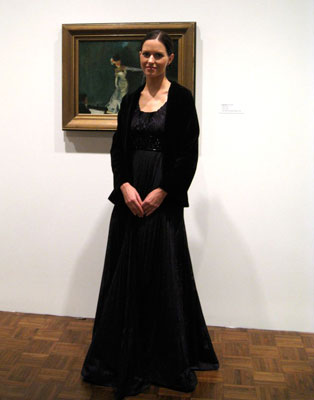 | Megan Garwood, who bought her Catherine Malandrino designer dress for $50 at a thrift shop. Ms. Garwood writes art criticism for M Magazine. | Nicole Cosgrove. |